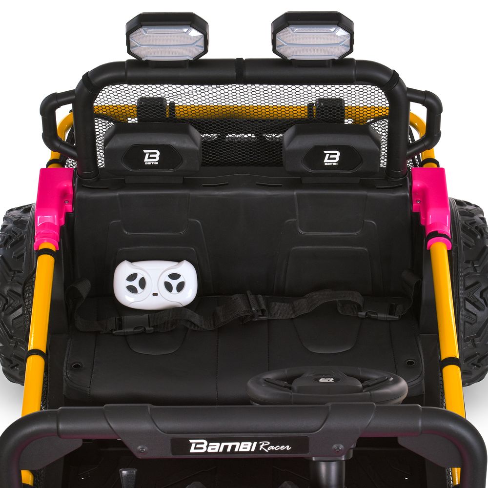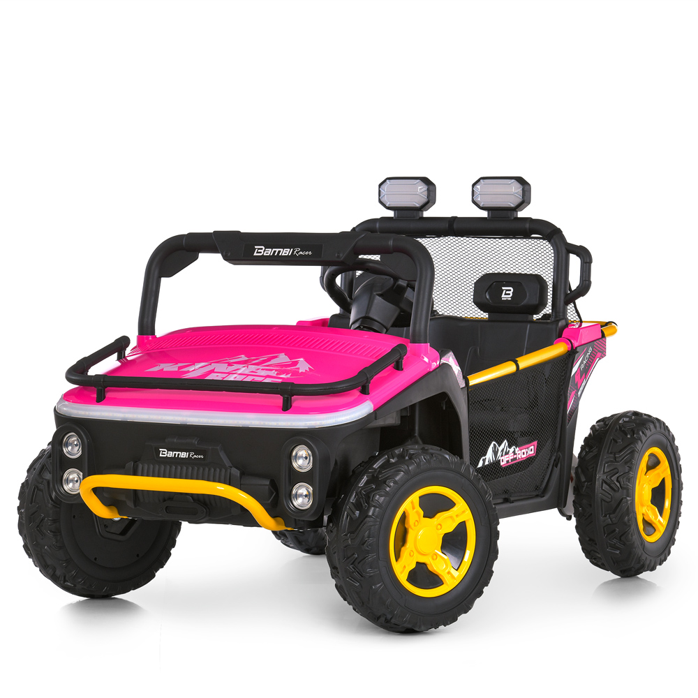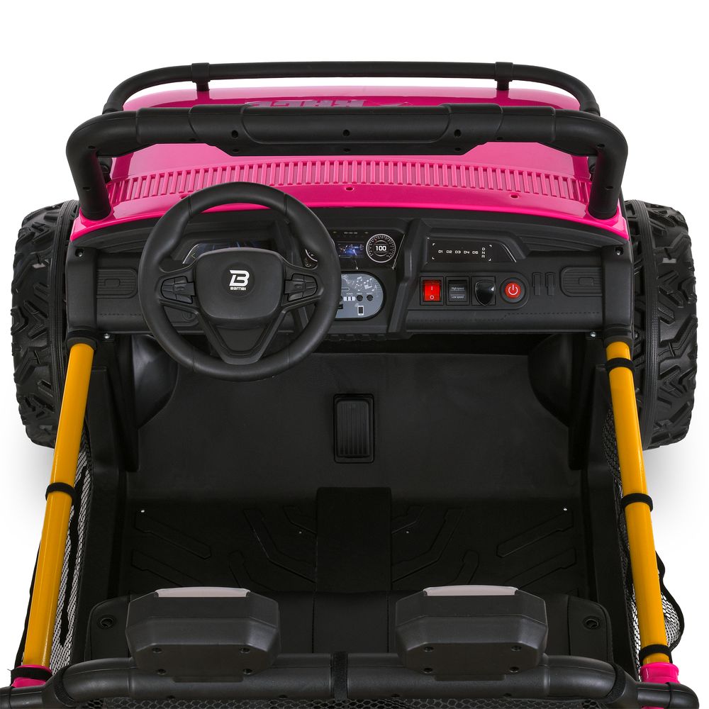 (1шт) р/к, 2,4G, 2*65W,1*24V7AH, муз, світло, шкір.сидіння, BLUETOOTH, USB, EVA, рожевий