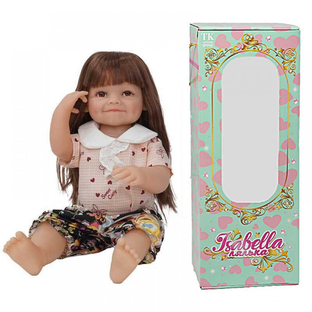 Лялька QM 24038-5 (12) "TK Group", висота: 50 см, гумова, імітація скляних очей, пустушка, пляшечка, памперс, в коробці
